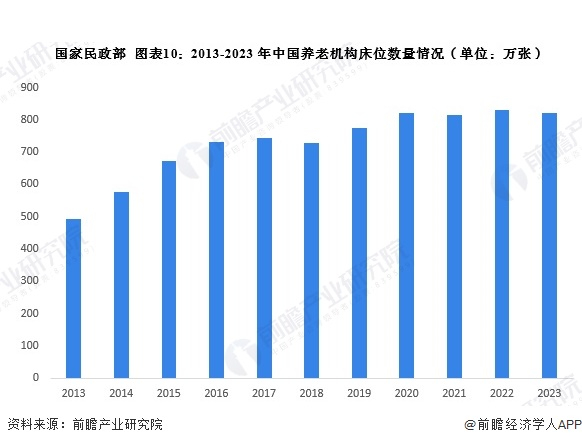 2013-2020年我国及养老机构床位整体呈稳步上升增长趋势。截至2020年底,全国共有养老床位821万张。2020年后,中国养老机构床位呈现波动态势,截至2023年底,中国养老机构床位数量为823万张。