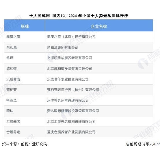 根据CNPP数据及网络用户调研结果,十大品牌网推出养老产业企业品牌排名,当前我国养老行业前十品牌分别是:泰康之家、亲和源、Kaijian凯健、诚和敬、乐成养老、雍柏荟、椿萱茂、YANDA燕达、汇晨养老、合展养老。