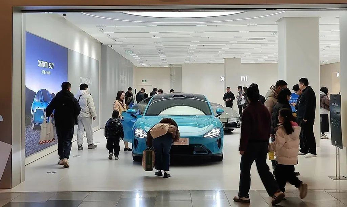 行人驻足观看小米汽车