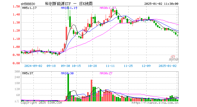 科创新能源ETF(588830)跌0.96%,半日成交额1529.38万元