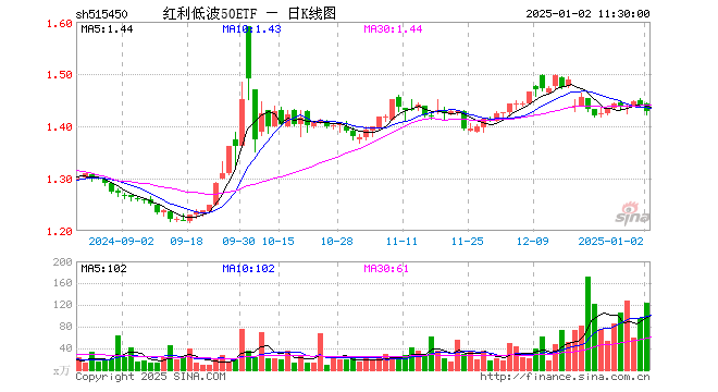 红利低波50ETF(515450)业绩比较基准为标普中国A股大盘红利低波50指数收益率,管理人为南方基金管理股份有限公司,基金经理为崔蕾,成立(2020-01-17)以来回报为89.94%,近一个月回报为4.93%。