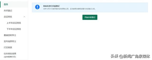登录系统以后,点击右侧的“ 开始兵役登记 ”进行兵役登记啦!