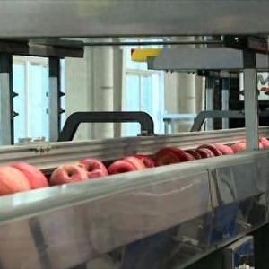 图为陕西洛川一企业内的智能选果线。 李进 摄