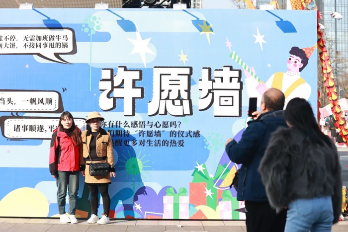 “全家身体健康”“期末考高分”“升职加薪”……在现场设置的2025年许愿墙上,密密麻麻的文字承载了市民游客对于2025年的期许。