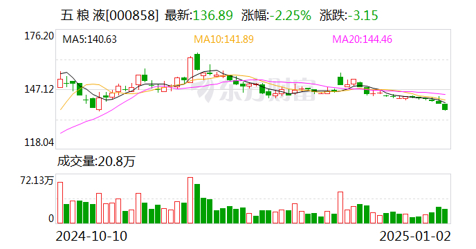 五粮液在积极为投资者创造良好回报的努力,也体现在公司股价表现上。据《证券日报》记者统计显示,A股20家白酒上市公司股价在2024年全年整体承压,以年涨跌幅统计来看,五粮液成为20家公司中唯一正增长的公司。