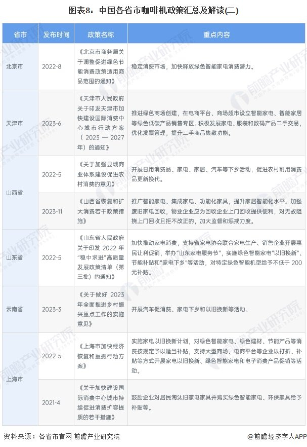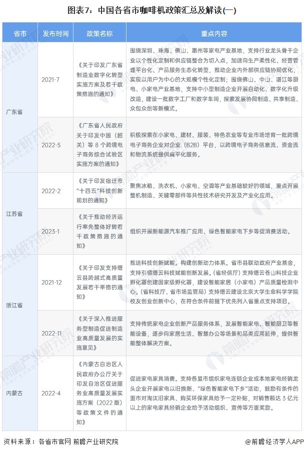 ——31省市咖啡机行业政策汇总