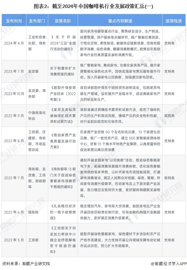 重磅!2024年中国及31省市咖啡机行业政策汇总及解读(全) 行业政策聚焦自主创新和品牌化发展