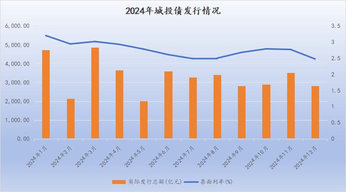 城投债方面,据新华财经统计,2024年城投债发行总额为39,659.62亿元,相较上一年发行规模环比下降15.15%。