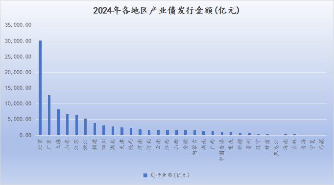 分地区来看,北京市、广东省和上海市发行规模居前,分别发行30,185.28亿元、12,780.38亿元和8,195.97亿元;青海省、宁夏和西藏三地发行规模最小,分别为51.30亿元、37.00亿元和8.00亿元。