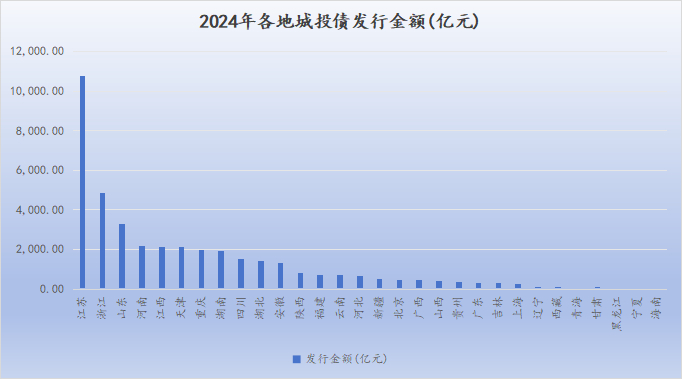分地区来看,2024年江苏、浙江和山东三地发行规模最高,分别为10,756.81亿元、4,839.94亿元和3,282.42亿元;相比之下,黑龙江、宁夏和海南发行规模最低,分别为19.50亿元、18.50亿元和6.00亿元。