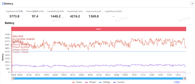 整体来看功耗表现较为出色,游戏的平均功耗为3.86W。