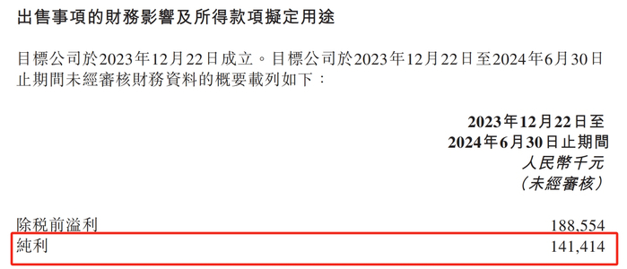 彼时的公司公告显示,与辉同行自2023年12月22日成立,至2024年6月30日6个多月时间,纯利为1.41414亿元人民币。
