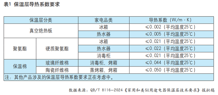2024年11月18日,工业和信息化部发布655项行业标准及6项行业标准外文版报批公示,其中包括QB/T 8116-2024《家用和类似用途电器保温层技术要求》(以下简称家电保温层标准)。该标准第一次从整个家电行业的角度梳理了保温层的技术要求,为家电产品技术升级提供方向。