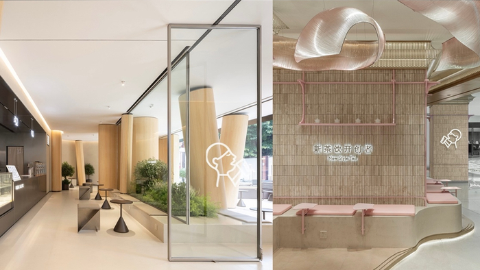 在包括伦敦New Oxford St店、墨尔本Emporium店、纽约曼哈顿Herald Square店等在内的海外门店中,喜茶营造了充满设计感的茶饮空间。如位于大英博物馆旁的伦敦New Oxford St店,喜茶以墨与茶两种元素为灵感,结合墨韵的表现形式与茶道的精湛工艺,构筑出了「游园·品茗·赏物」的水墨主题空间。