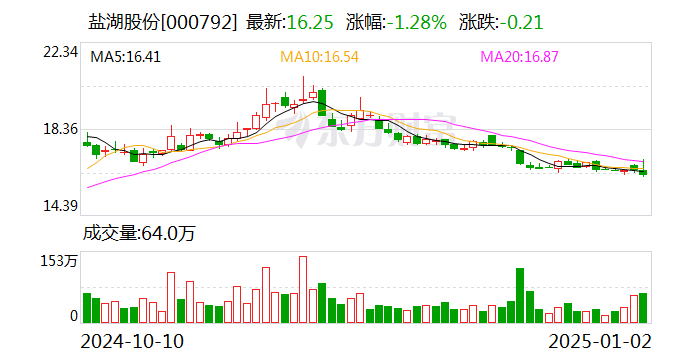 此外,2024年12月9日至12月24日,中国五矿通过大宗交易的方式合计增持2%的盐湖股份,交易价格区间为16.61元/股-17.63 元/股。这部分股票由国家开发银行定向转让,转让之后,国家开发银行的股份跌至4.99%。