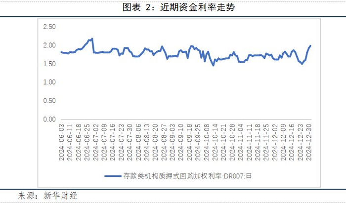 新华财经北京1月2日电(分析师刁倩)2024年12月份,流动性充裕,央行在公开市场保持逆回购操作规模以对冲资金需求,同时缩量平价续作MLF,保持整体合理均衡。资金利率方面,受月中税期以及月末跨年等需求影响,月中及月末利率有所走高。展望2025年1月资金面或受多因素影响阶段性收紧,机构预计春节前降准的概率较高,降准可适时维护市场流动性。
