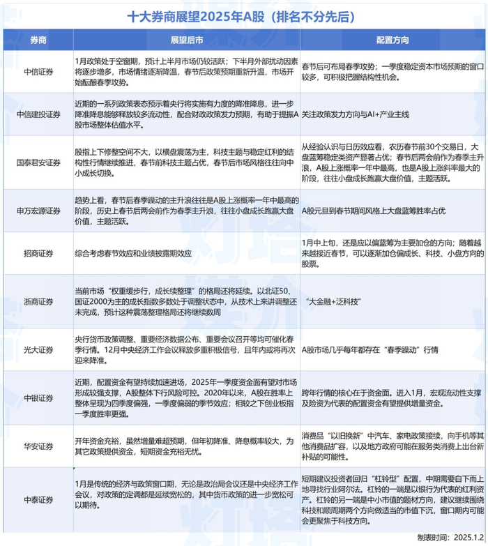 文末还有十大券商对2025年A股市场的展望观点。