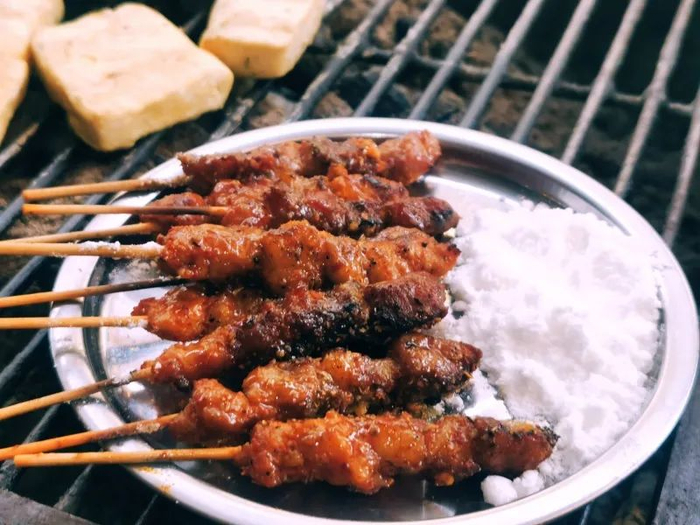 在火车站商场,糖粉小肉串、凉勺粉、砂锅饭、酸浆粑粑,都是个旧有名的小吃。