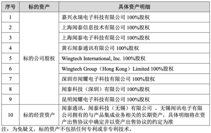 本次拟出售的标的资产为与产品集成业务相关的 9 家标的公司股权和标的经营资产,具体范围如下表所示。