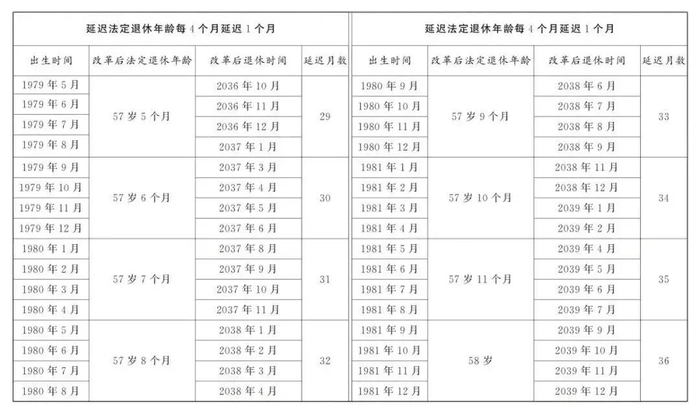 具体的男职工延迟法定退休年龄对照表如下图所示⬇️