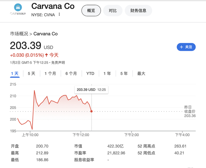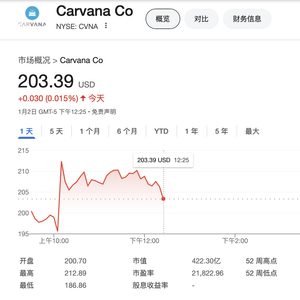 不过,这份做空报告似乎对Carvana股价影响不大。虽然该股周四早盘一度重挫8%,但随后止跌回升,午盘时分报203.39美元,涨0.015%。