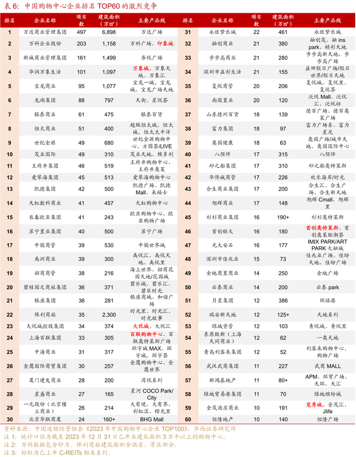 消费基础设施在2023年236号文中纳入C-REITs的试点范围,常态化发行下消费基础设施已经包括城乡商业网点(百货商场、购物中心、商业街区、商业综合体、农贸市场)、专业市场(家居、建材、纺织等)以及保障基本民生的社区商业项目,满足一定条件的酒店和商业办公用房目前也可纳入项目底层资产。消费基础设施在全球REITs市场中也是最重要、最具有代表性的底层资产之一,以零售商业为代表,通过构建消费场景(“场”),将各式商品供给(“货”)与消费者(“人”)需求匹配起来,完成吸引客流到进行消费的转化。