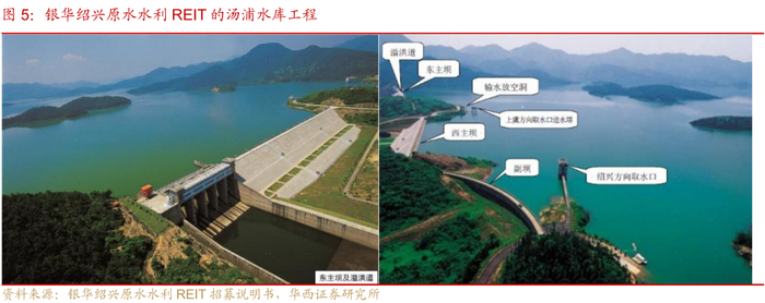 全国首单水利基础设施REITs——银华绍兴原水水利REIT是一个水库经营收益权项目,基础资产为浙江省绍兴市的汤浦水库工程。作为一座供水、防洪、灌溉、改善水环境等综合利用的大(二)型水利工程,通过在规定区域范围内向绍兴市越城区、柯桥区和上虞区供水,同时跨区域向慈溪市供水,并收取原水费获得收益。