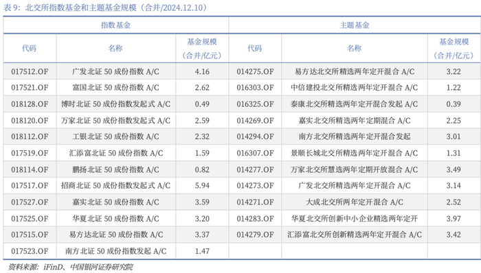由于北交所市场容量不及主板,首批8只北交所基金发行额度均为5亿元,合计40亿元。三年来北交所基金逐步扩容,今年北证50指数的较好表现也带动了北证基金的规模扩张。我们认为随着北证市场规模的持续扩张,北证ETF产品落地指日可待。