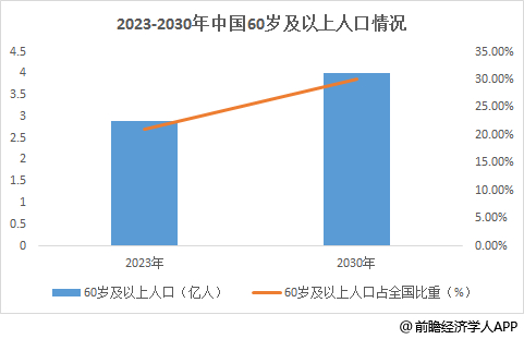 截至2023年末,全国60周岁及以上老年人口2.9亿人,占总人口的21.1%;到2035年,60岁及以上老年人口将突破4亿,在总人口中的占比将超过30%。据测算,目前中国银发经济规模在7万亿元左右,约占GDP的6%。