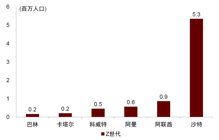 图表7:GCC国家中最庞大的z世代群体(2023)