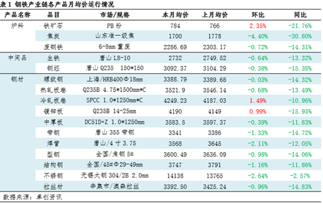 钢材产业链价格变化及传导逻辑:多数产品月均价环比下跌