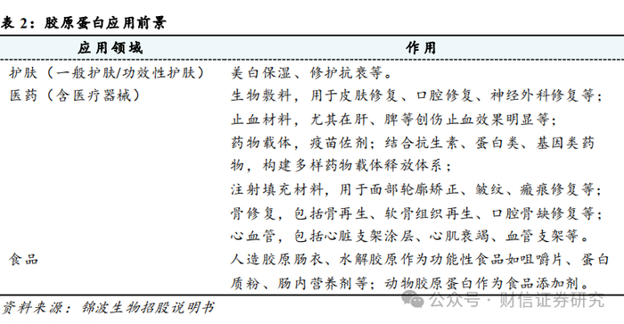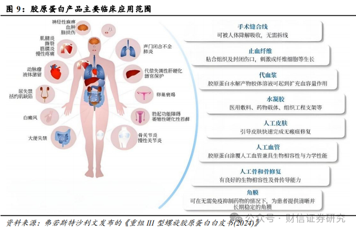 重组III型胶原蛋白凭借其生物相容性、生物可降解性、促进细胞增殖、止血性等独特性能,在创面敷料、止血材料和药物载体等严肃医疗领域被广泛应用。