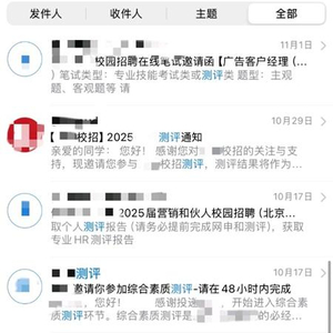 一名应届毕业生的邮箱里塞满了各种测评通知。受访者供图