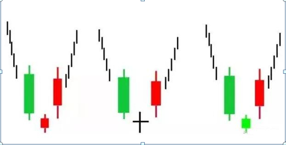 两阳夹一阴既是上涨中继信号,也是底部反转信号,技术特征主要有3点:1)它是由三根K线组合而成;2)第一天收出一个大阳线或中阳线,第二天下行收出一根实体与第一天差不多的阴线,第三天收出一根大阳线或中阳线,实现技术反包;3)两阳夹一阴存在技术变形,强势程度也不相同,如下图所示。