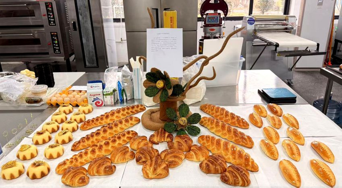 烘焙技术赛项作为特色赛项,吸引了众多师生关注。选手们身着统一的厨师服,手法熟练地在烤箱和操作台之间穿梭。他们或是精心装饰着蛋糕,或是专注地调整着面包的形状。美术造型赛项现场则显得更为安静和专注。选手们或坐或立,手中的画笔在画布上翩翩起舞。
