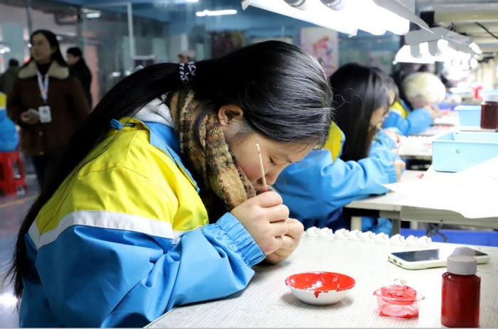 另一边的校企共建的工作室里,学生们正沉浸在创作的海洋中,他们或手持画笔,勾勒出精美的图案;或挥舞刻刀,在PVC模具上雕琢出栩栩如生的造型;或挥洒漆液,在器物上绘制出流光溢彩的纹样。