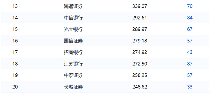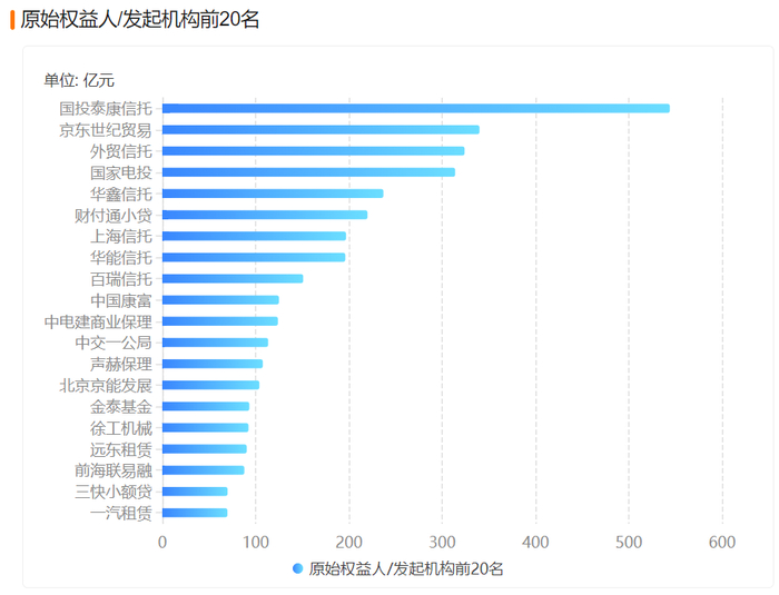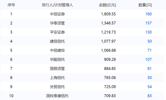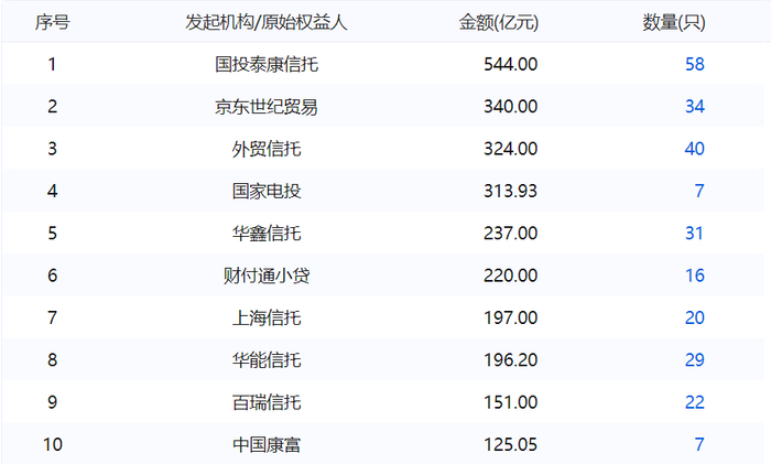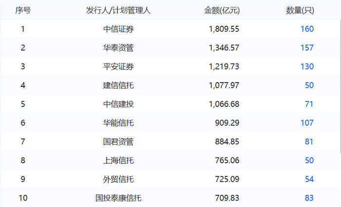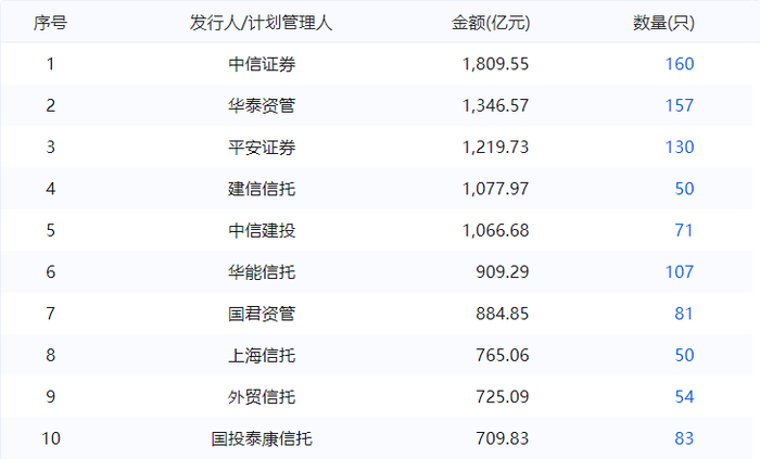企业预警通根据2024年全市场ABS总承销金额获得的主承销商前20排名。如下详情: