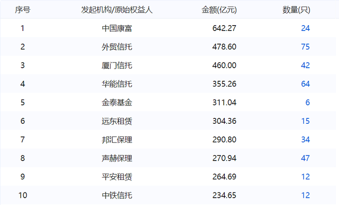 数据说明:以上数据由企业预警整理所得,由于部分ABS项目数据未完全公开,统计金额可能会小于实际发生金额。本次统计数据截至2024年12月31日,仅供参考。最新数据以市场公开披露为准,如有数据疑问可在公众号后台或企业预警通后台反馈。
