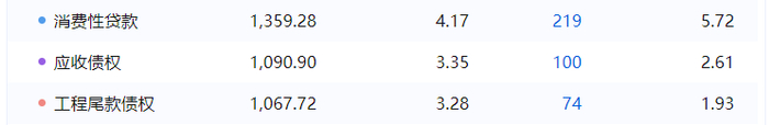 从基础资产类型来看,汽车贷款类发行总额仍最高,累计总额1296.68亿元,同比减少;其次是企业贷款类,项目发行总额达655.21亿元;个人住房抵押贷款类发行264.06亿元,以上3类发行规模依次列前三,而消费性贷款类发行减少至260.76亿元,另外还发行信用卡贷款类、个人经营不良贷款类、不良小微企业贷款类。