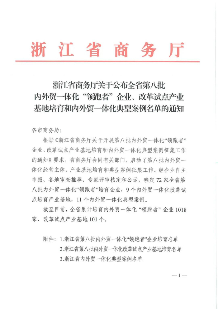 内外贸一体化发展即打通国内国际两个市场,畅通国内国际双循环,是构建新发展格局、推动高质量发展的内在要求。浙江省遴选内外贸一体化典型案例旨在加快建设国内国际“双循环”战略支点和枢纽,充分发挥示范企业在促进内外贸稳中提质方面的示范带动作用。