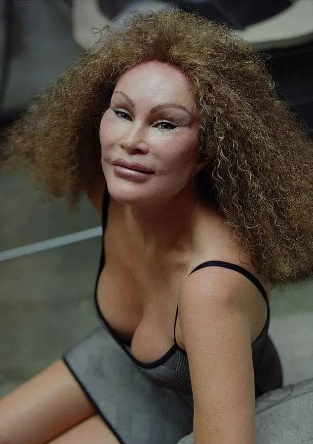 不过,她显然不是天生就长成这个样子的,她像猫的眼睛以及像狮子的面容都是数十年里持续多次整容的成果。