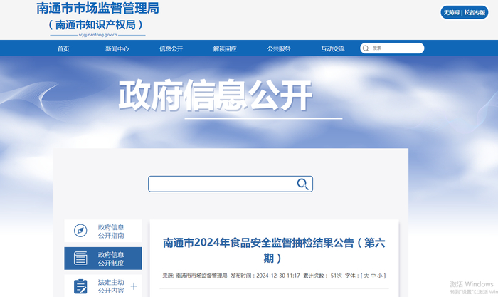 江苏省南通市2024年食品安全监督抽检结果公告(第六期)