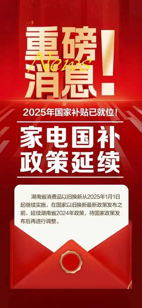 2024年12月31日,海南省商务厅发布关于2025年消费品以旧换新政策衔接工作安排的公告。根据公告,2025年1月1日起,海南继续实施家电、家装家居补贴以及汽车报废更新、汽车置换更新、电动自行车以旧换新补贴政策。湖南省商务厅也于当天发布公告称,从2025年1月1日起,启动实施2025年湖南省家电以旧换新跨年度衔接政策。此外,贵州、上海、河北等省份(直辖市)也安排了以旧换新政策跨年度衔接具体措施。