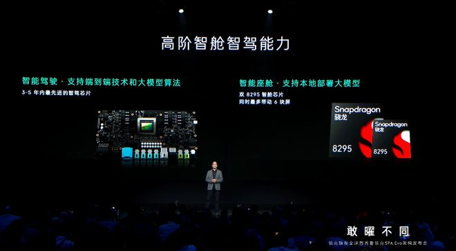 新架构采用最强大脑 LKEEA 中央集成式数字架构,智能驾驶支持端到端技术和大模型算法,智能座舱支持本地部署大模型,双 8295 座舱芯片,同时最多带动 6 块屏。
