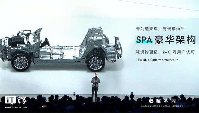 IT之家从官方介绍获悉,SPA 豪华架构由沃尔沃打造,耗资约百亿。SPA Evo 架构则为大型高端电混而生,轴距 3050mm 起,只做 5 米 + 的大型豪华车。