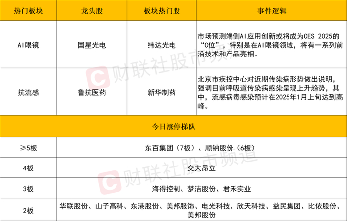 消息面上,1、证监会表示,“1月15号之前释放全部利空”、“保险公司大额赎回公募基金”都是谣言,将严厉打击编造、传播股市谣言的行为;2、发改委表示,“两新”政策加力扩围,将实施手机等数码产品购新补贴;推动房地产市场止跌回稳,继续提振资本市场;3、“百镜大战”一触即发!苹果、谷歌、三星、阿里等巨头纷纷布局AI眼镜;4、商务部公告,将28家美国实体列入出口管制管控名单;5、近期多地流感高发,呼吸道疾病用药销量持续走高;此外,我国首款干细胞治疗药品获批上市,市场规模快速提升。