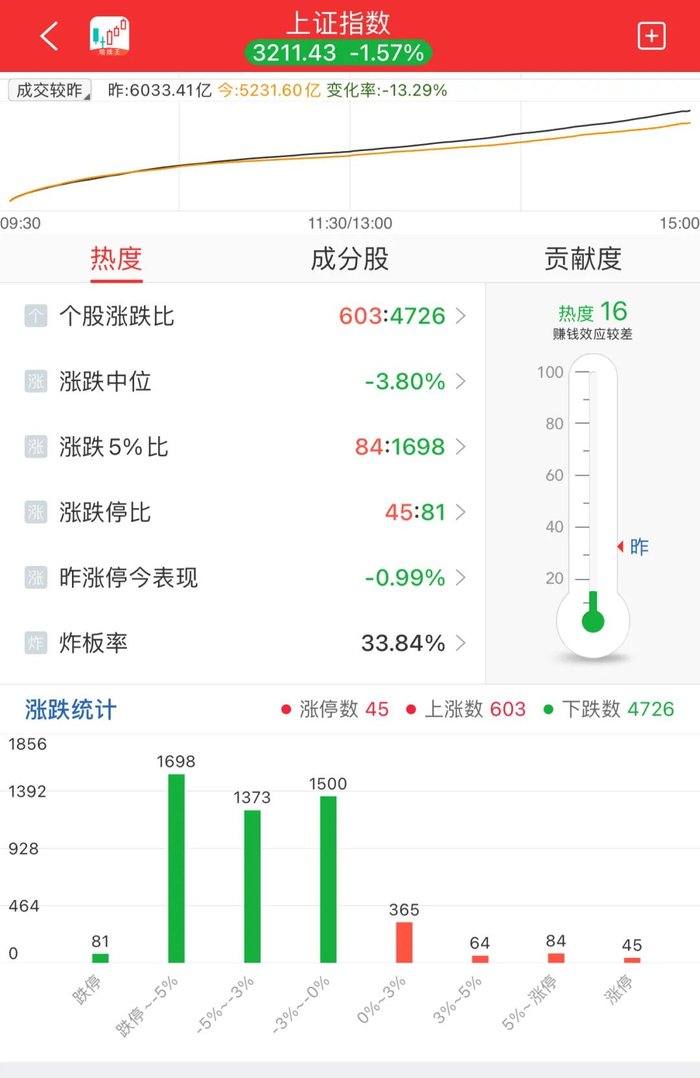 2、沪指跌1.57%逼近3200点、创指跌2.16%创阶段新低 微盘股指数跌近5% 全市场超4700股飘绿、超百股跌停