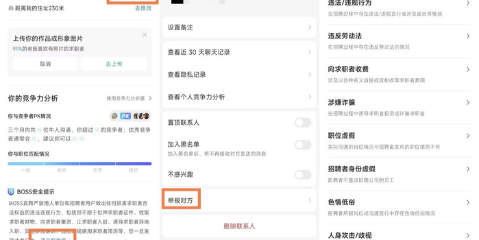 最重要的是,要警惕一切收费行为,发现不对及时举报,并附上与对方的聊天记录等证据,在职位页、招聘者页等处都有举报入口。