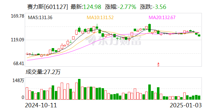 去年前三季度,赛力斯实现营收1066.27亿元,同比增长539.24%,归母净利润为40.38亿元,同比扭亏为盈。