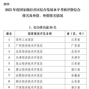 2023年度国家级经开区综合发展水平考核评价综合排名及部分单项排名情况
